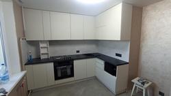 Кухня с пластиковыми фасадами с комбинированным цветом