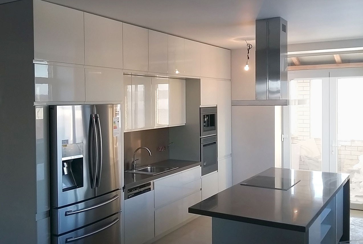 Кухня с фрезерованной интегрированной ручкой из крашеного глянцевого МДФ