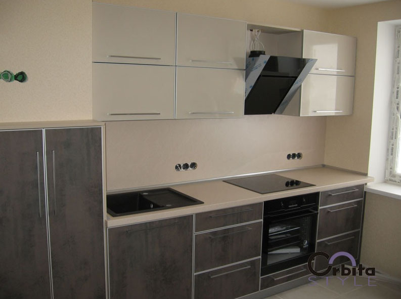 Кухня с пластиковыми фасадами с комбинированным цветом
