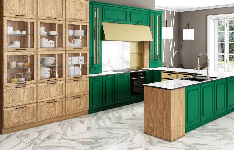 - Крашенные фасады из массива придают кухне элегантный и стильный вид.