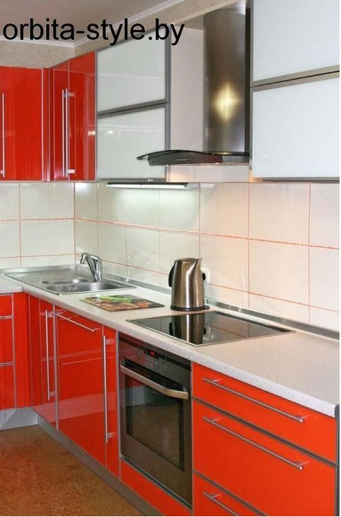 код 90963Угловая кухня из пластика с рейлинговой фурнитурой.
