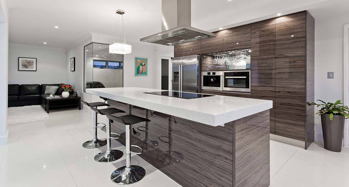 Однотонный древесный цвет фасадов из ЛДСП. Ширина кухни 180 см.