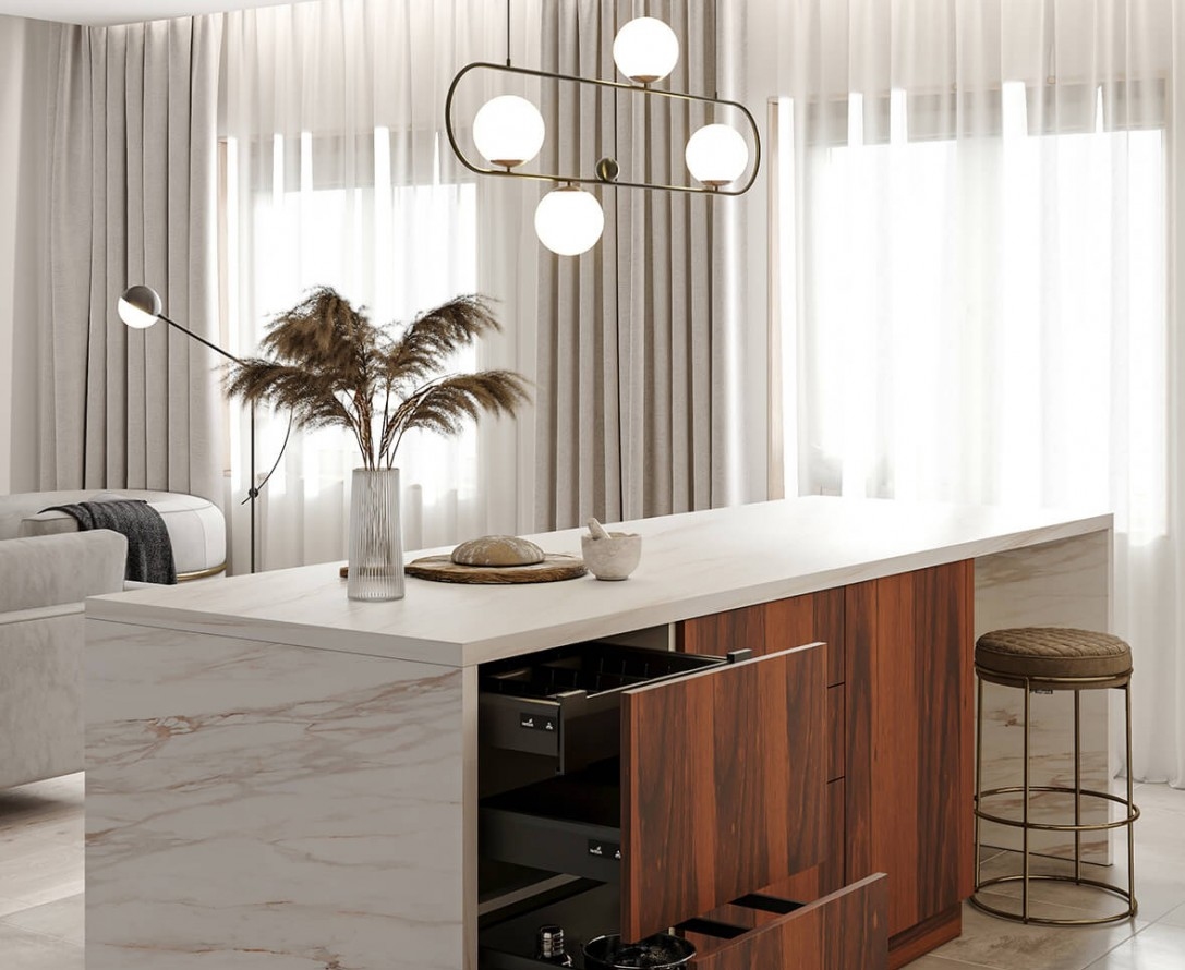 Встраиваемая современная кухня с раздвижными створками