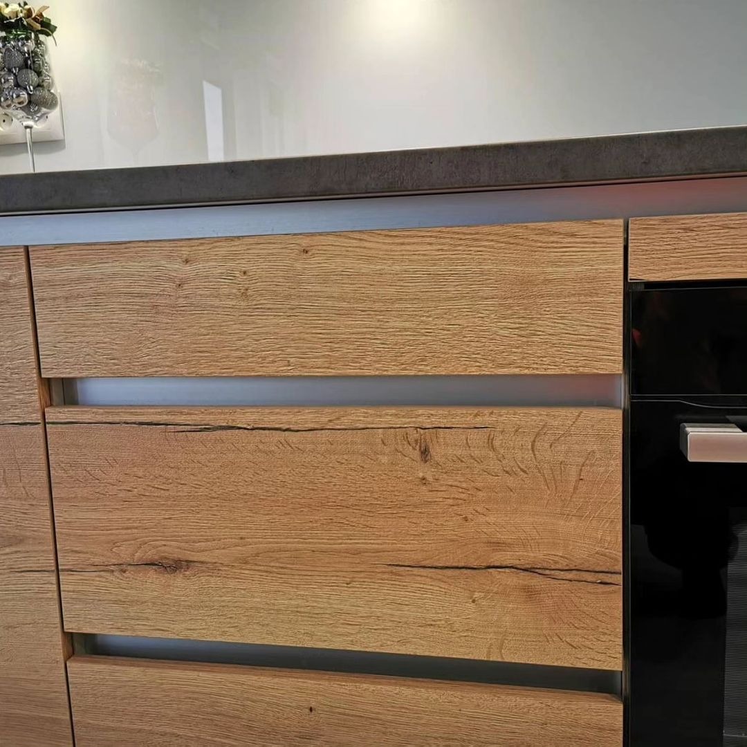 В данной кухне используются фасады МДФ, покрытые эмалью.
