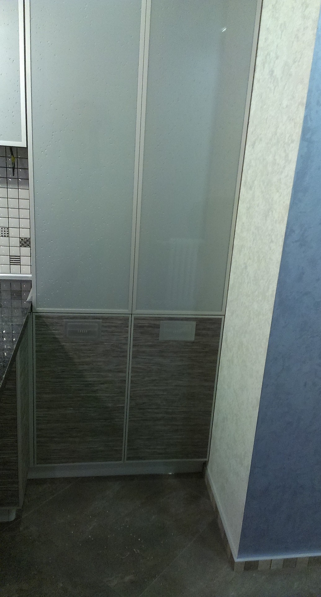 код 84041Верх в матовом остеклении. Столешница под черный габбро. Низ - вудлайн мокко.