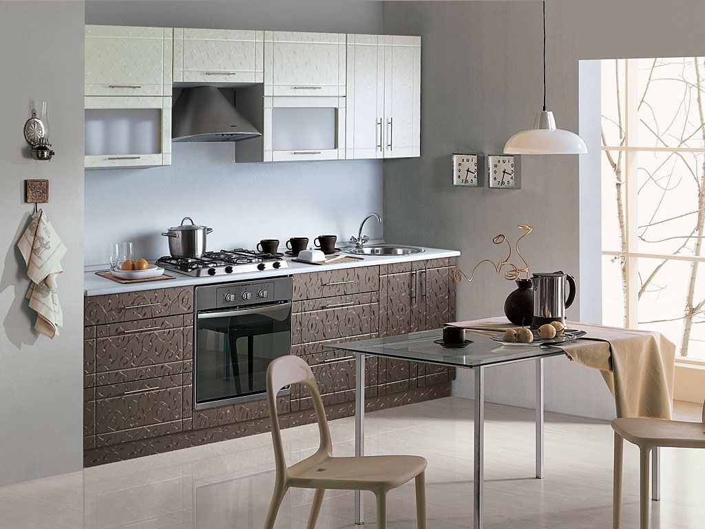 код 88510Верх молочной расцветки, частично остеклен лакоматом. Нижние шкафчики кофейного цвета.