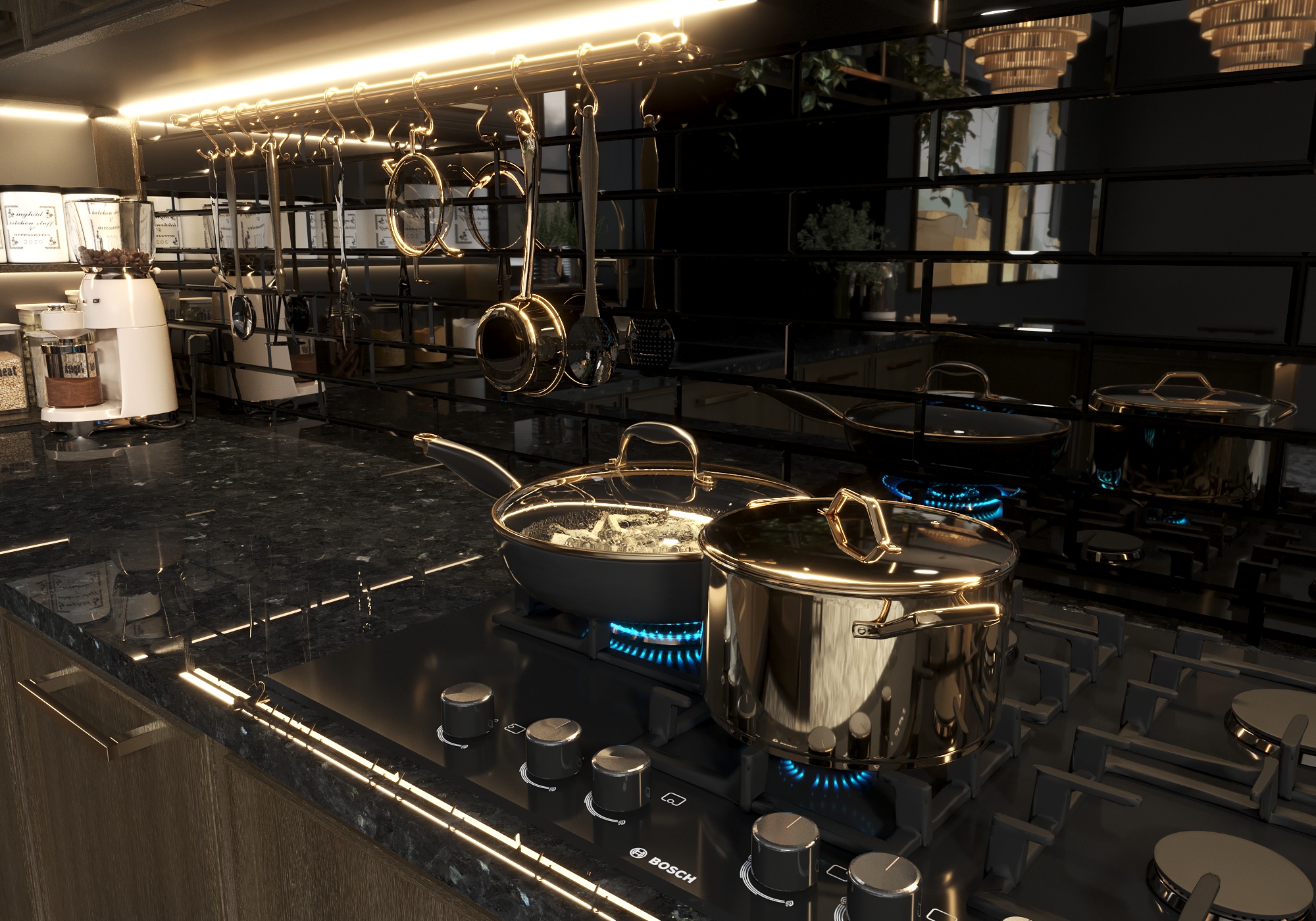 Материал фасада и корпуса: ЛДСП 16 мм. Ширина кухни 170 см.