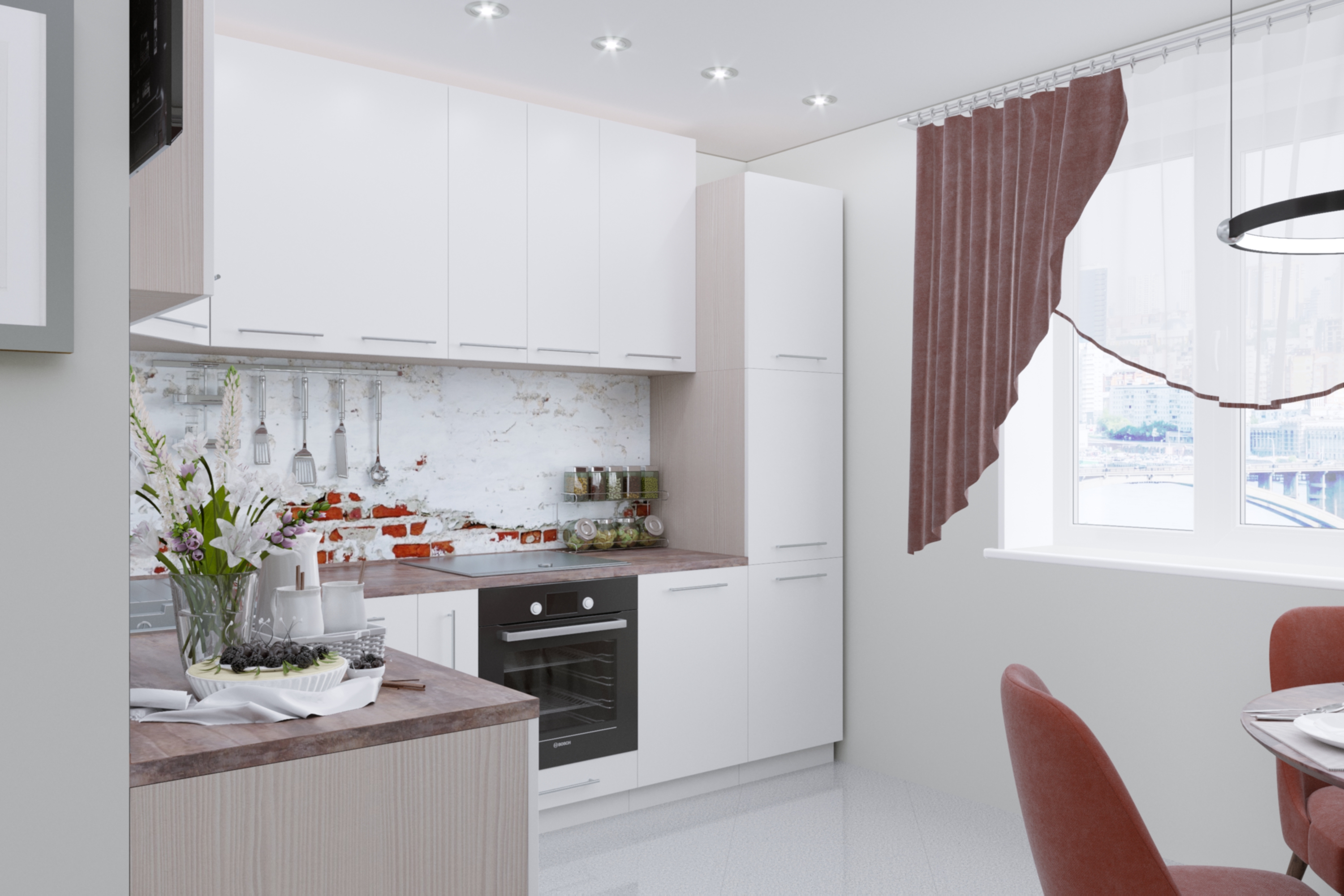 Комбинированные фасады из МДФ. Ширина кухни 170 см.