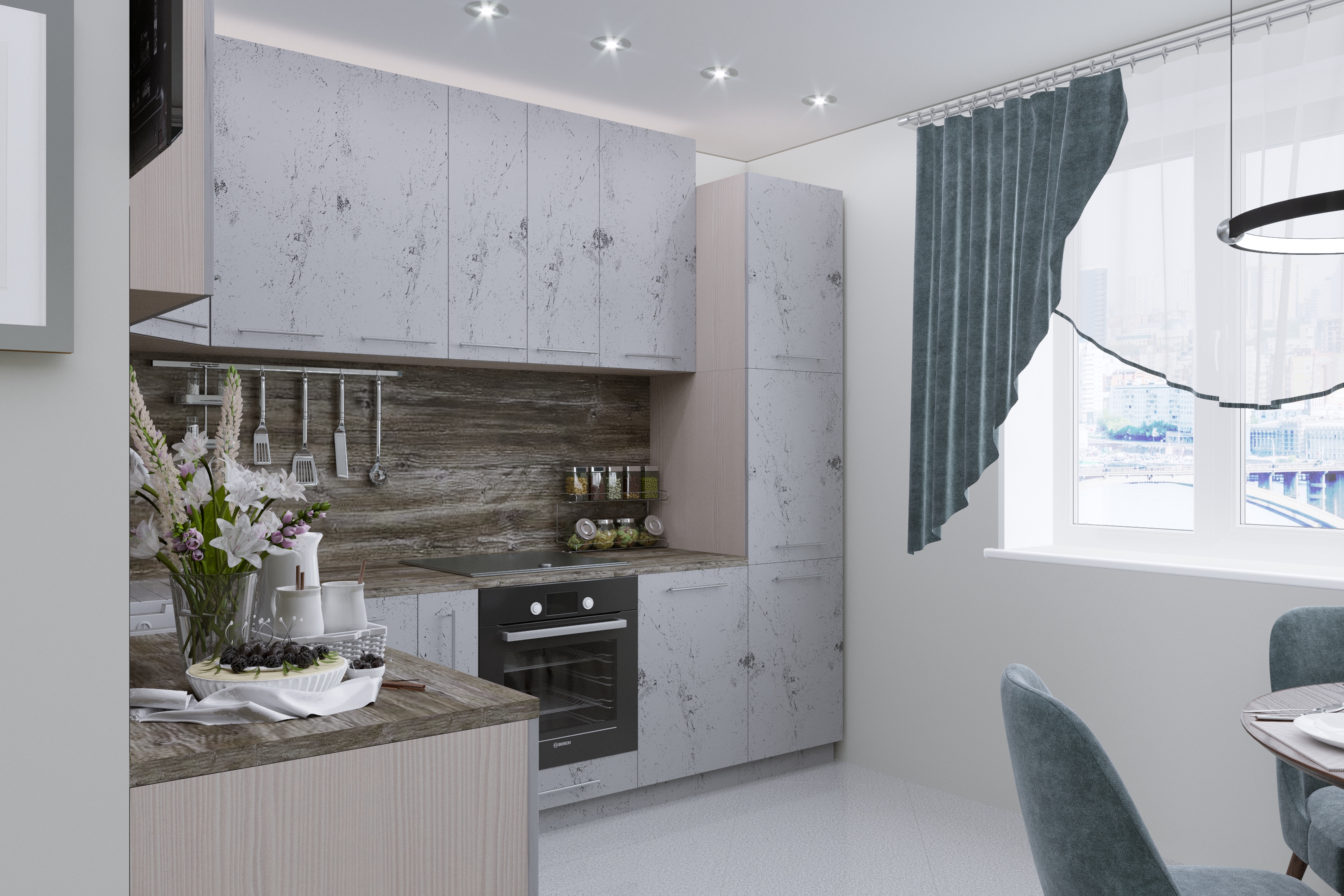 Прямая кухня с комбинированными фасадами