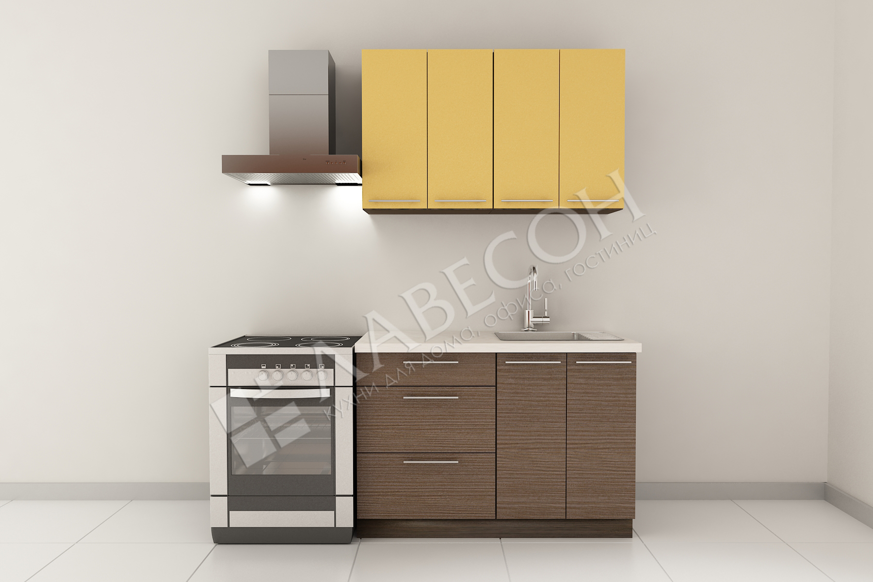 Материал фасада и корпуса: ЛДСП 16 мм. Ширина кухни 100 см.