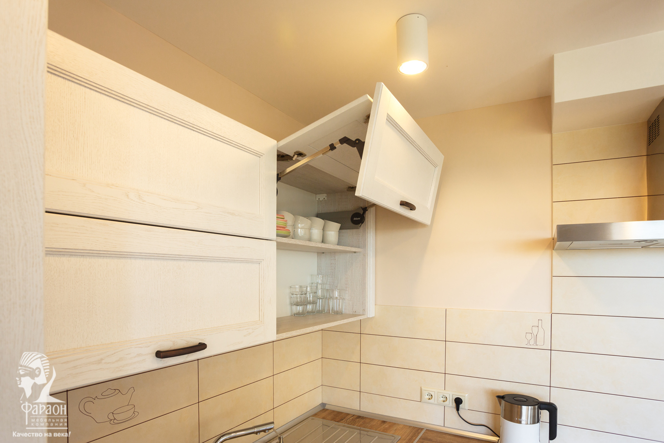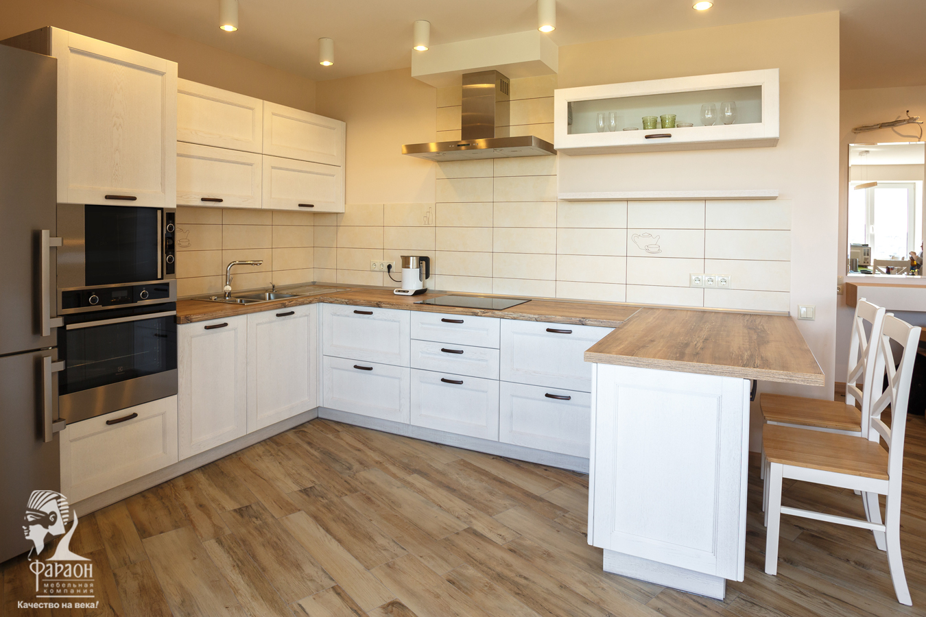 Материал фасада и корпуса: ЛДСП 16 мм. Ширина кухни 210 см.