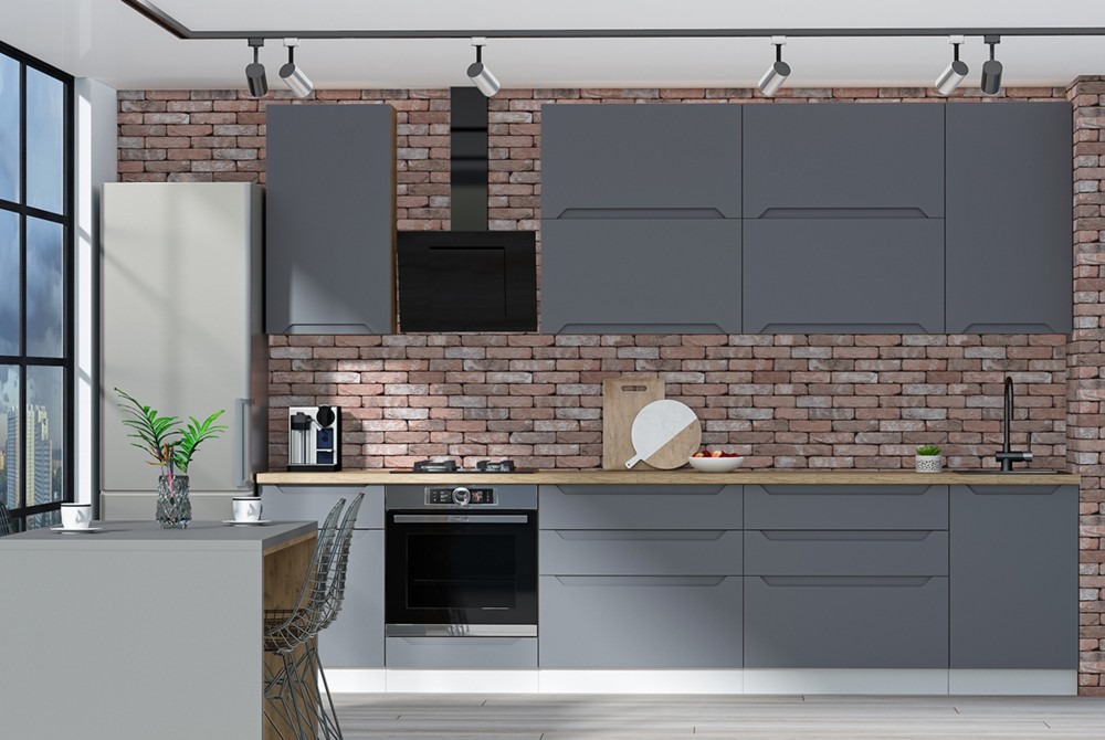 Кухня «Мемфис 2.8м» - Атласный серый/Черный трюфель