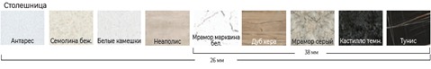 Варианты цветов корпуса, фасадов МДФ, столешницы: