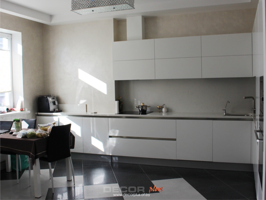 код 85033Стильная кухня в светлых тонах из экологически чистых материалов. Сочетание простоты и роскоши.