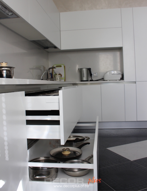 Петли и направляющие с доводчиком. Полное выдвижение ящика. Фурнитура австрийского производства от Blum.
