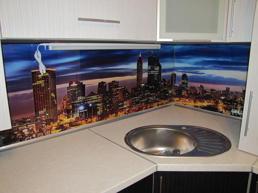 код 64781Скинали с фотопечатью. Небольшая барная стойка. Фасады: пластик.