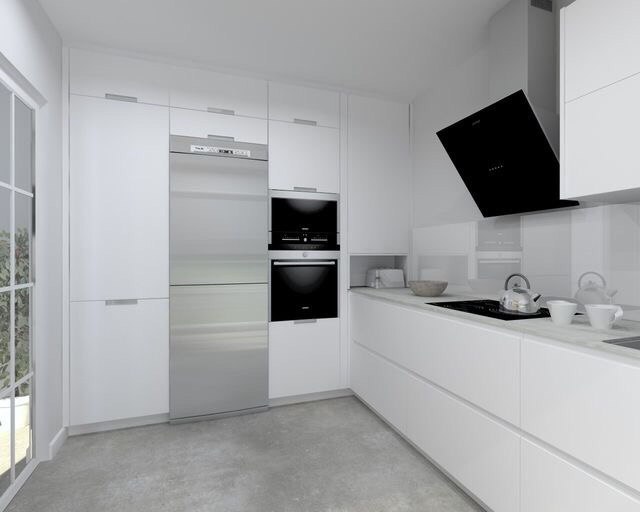 Вместительный модуль для встраиваемой техники. Интегрированные ручки. Цвет: белый.