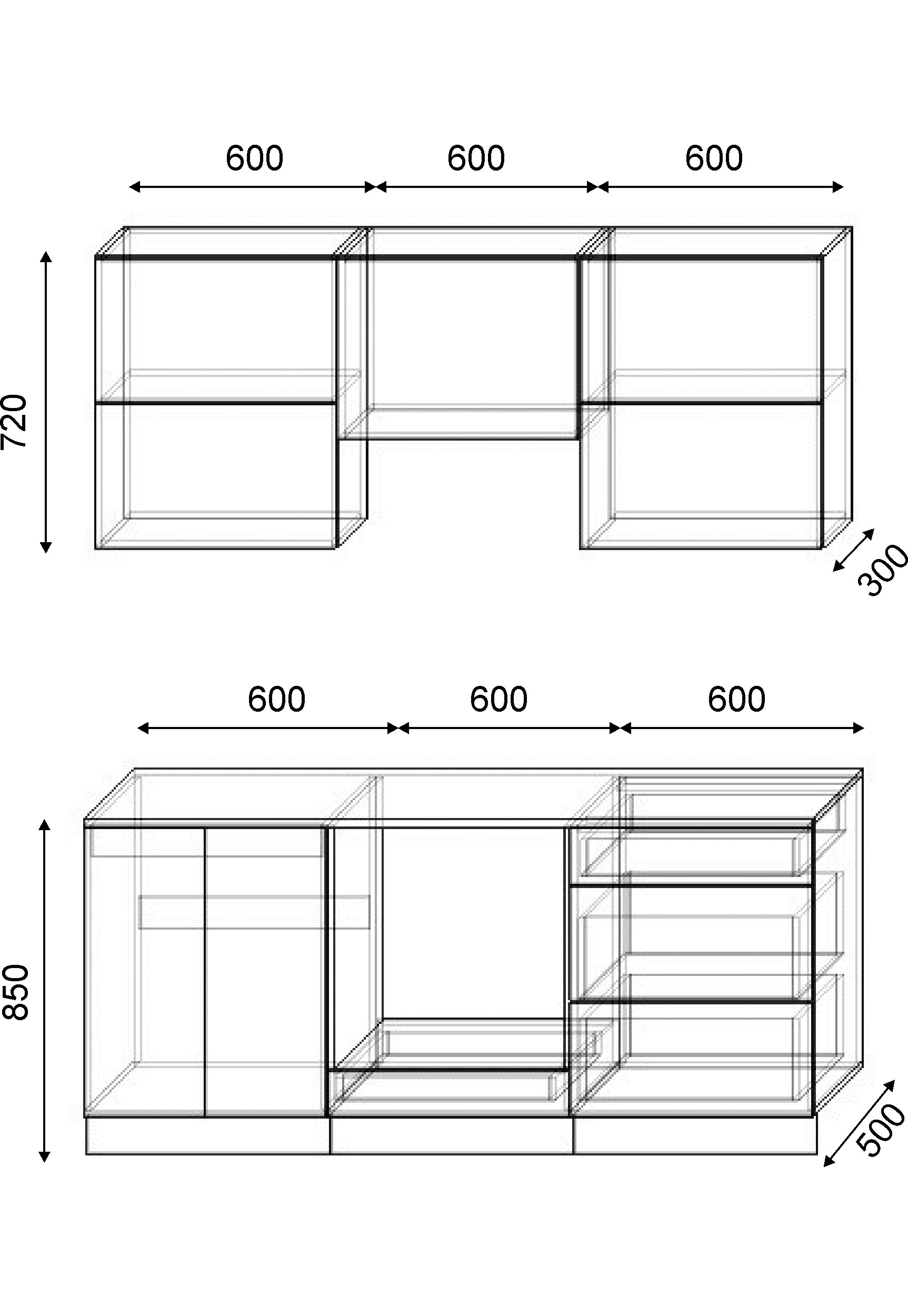Варианты модулей: в данной коллекции представлены следующие размеры шкафчиков: 500мм, 600мм, 700мм, 800мм.
