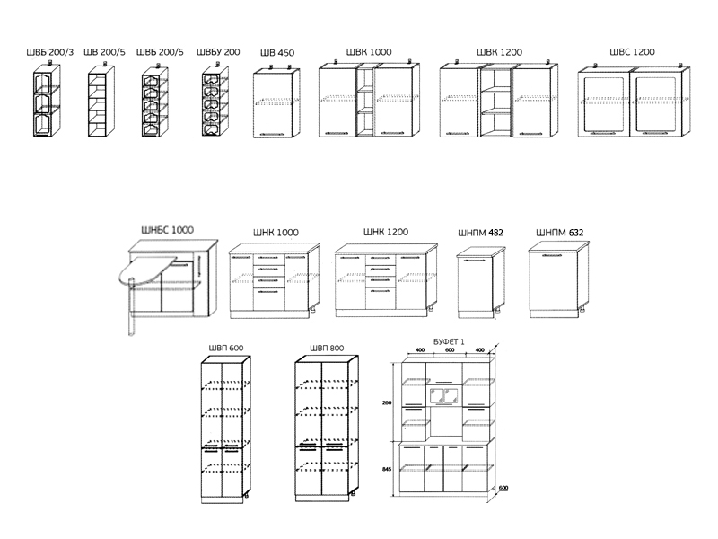 Мойка и сушка в комплектацию не входят. Размеры шкафов - согласно схемы завода-изготовителя. Цена указана ориентировочная за изделие длиной