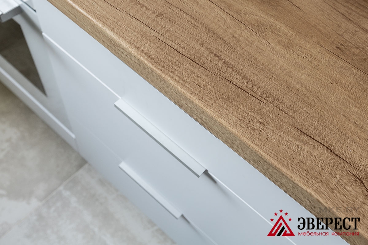 Кухня «Эстетик/Хелмер 3.0м» Акрил/ЛДСП - Магнолия/Дуб вотан