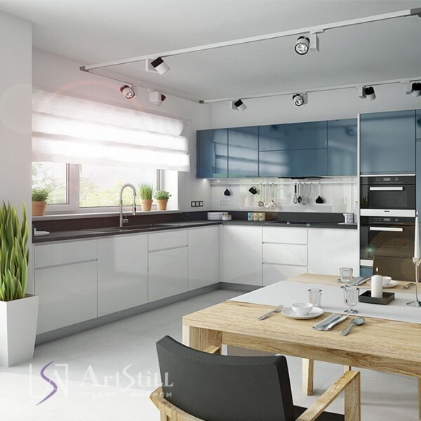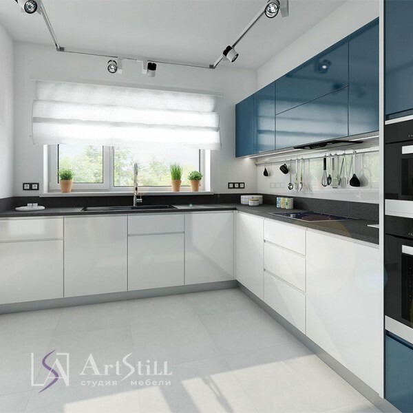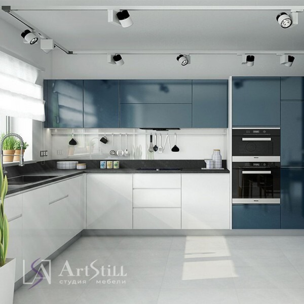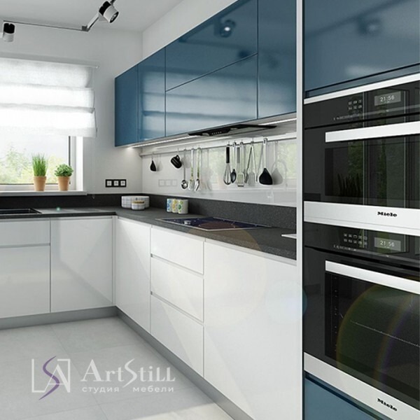 Фасады: МДФ крашенный матовый цвет белый RAL9001 и синий RAL5001;