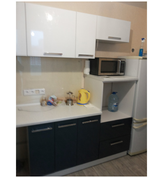 Прямая кухня из МДФ, не требует особого ухода и специальных моющих средств. Может служить до 20 лет.