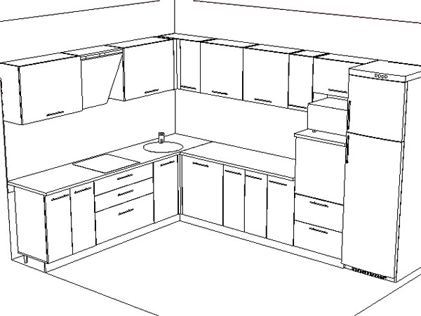 Материал фасада и корпуса: ЛДСП 16 мм. Ширина кухни 100 см.