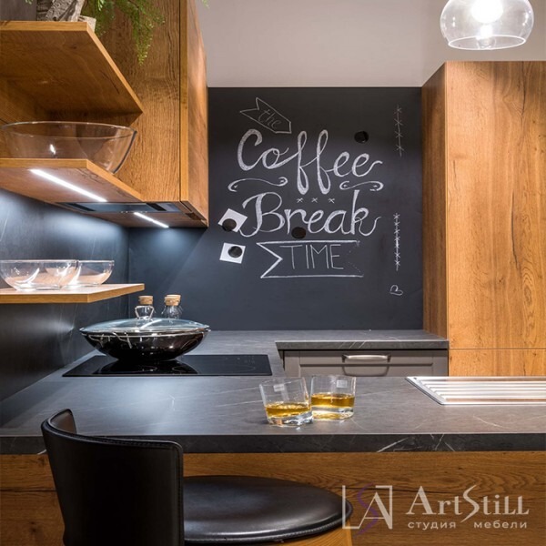 Комбинированные фасады из МДФ. Ширина кухни 160 см.