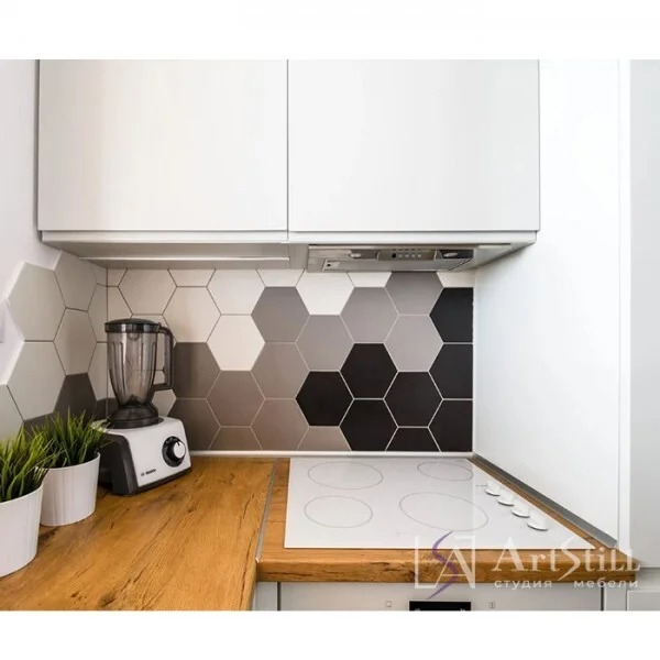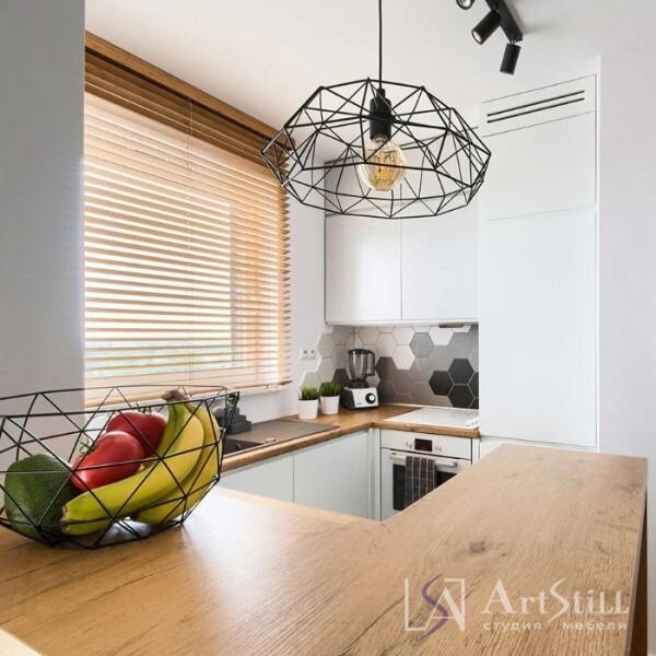 Кухня п-образная выполнена в «Современном стиле». Дизайнерская кухня на заказ очень маленького размера. Профессиональный подход помог данной кухне сталь не только стильной и удобной.