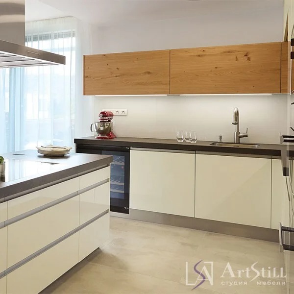 Ручки: в нижних фасадах интегрированные, верхние фасады открываются нажатием;