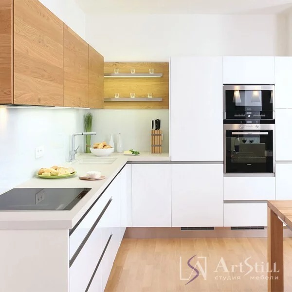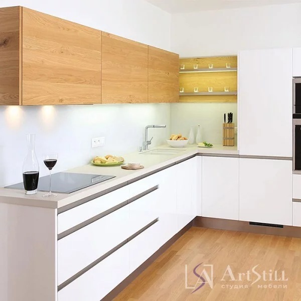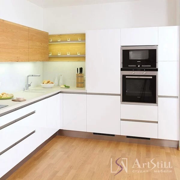 Фасады: нижние МДФ крашенный матовый цвет белый RAL9001;