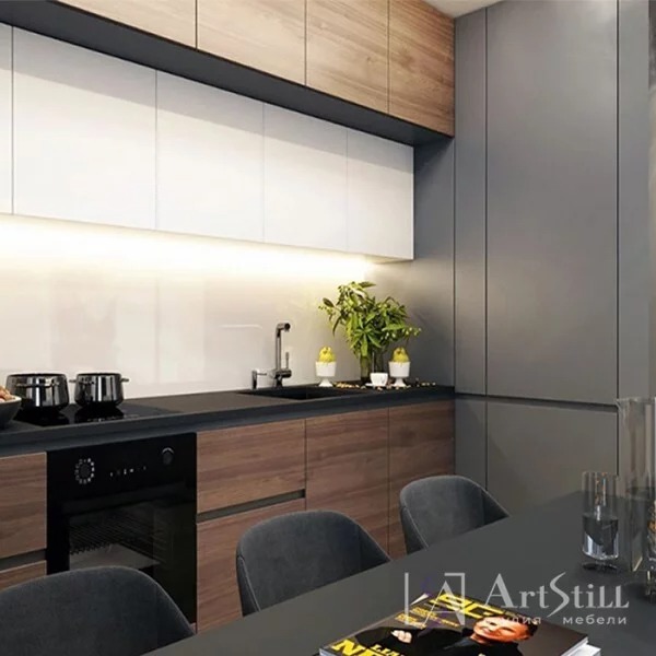 Современный кухонный гарнитур из ДСП в скандинавском стиле.
