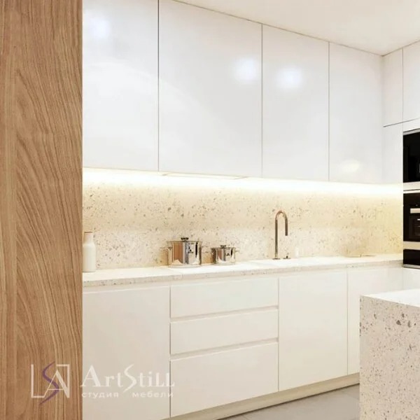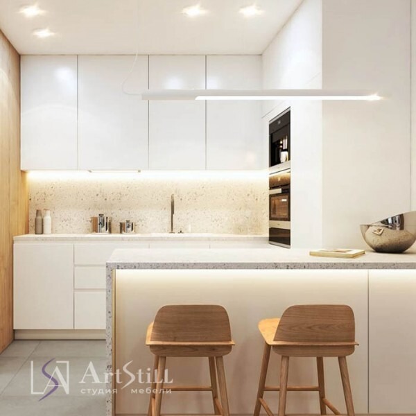 Фасады МДФ 19 мм с интегрированной ручкой. Подсветка.