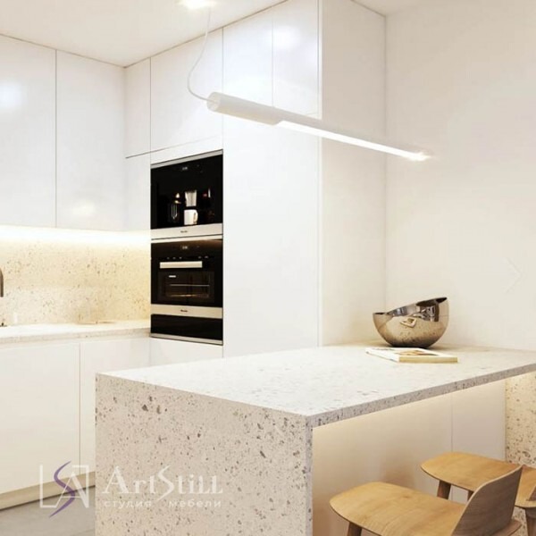 Фасады: крашенный МДФ матовый белого цвета RAL9003 с интегрированной ручкой;