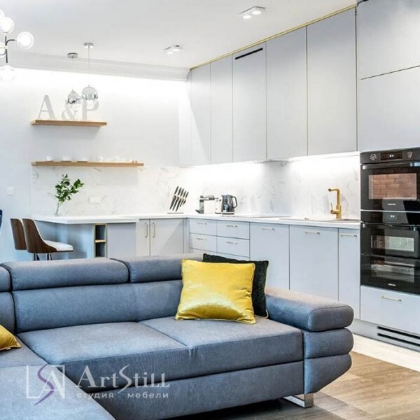 - Современный стиль: кухня выполнена в современном стиле, который отличается лаконичностью и функциональностью.