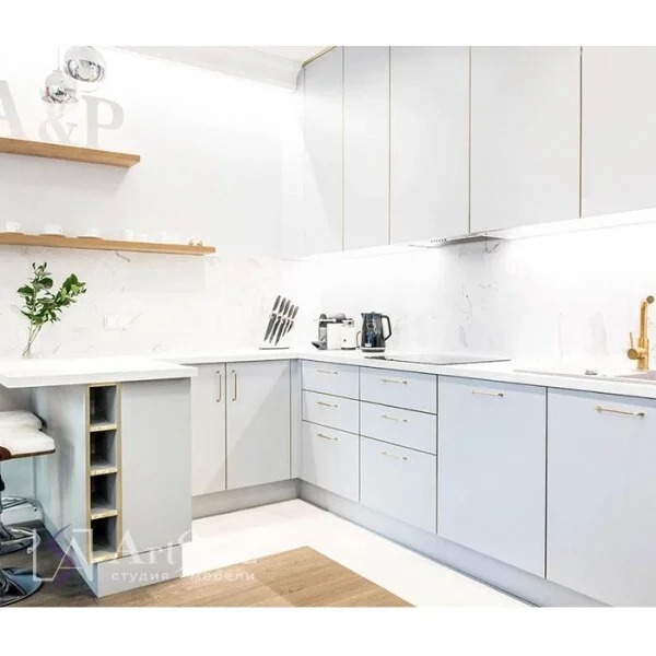 - П-образная форма: П-образная форма кухни обеспечивает удобство и практичность при приготовлении пищи.
