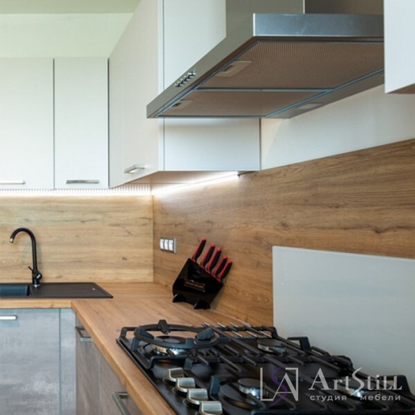 Современная кухня в скандинавском стиле. Светлые фасады из ДСП.