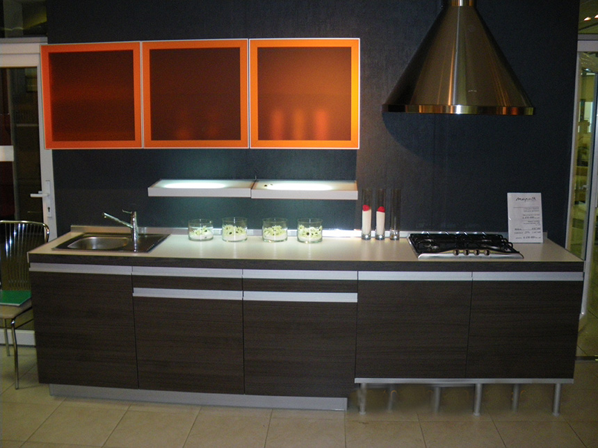 Кухня с оригинальным дизайном украсит собой интерьер вашей городской квартиры или загородного дома. Линейная модель несколькими подвесными модулями с застекленными створками и напольным рядом с рабочей поверхности из ударопрочного материала.