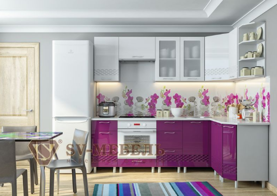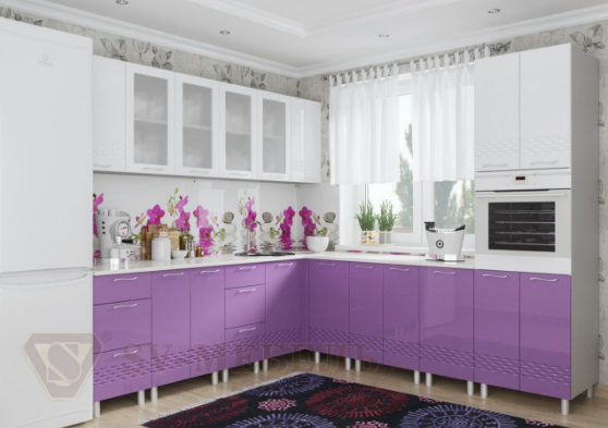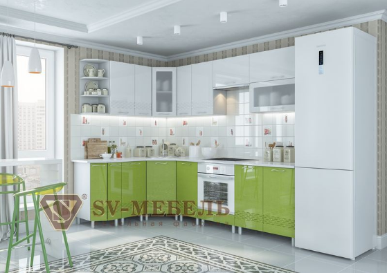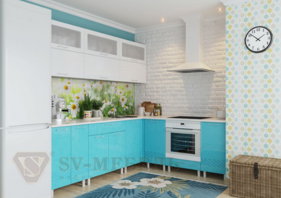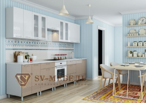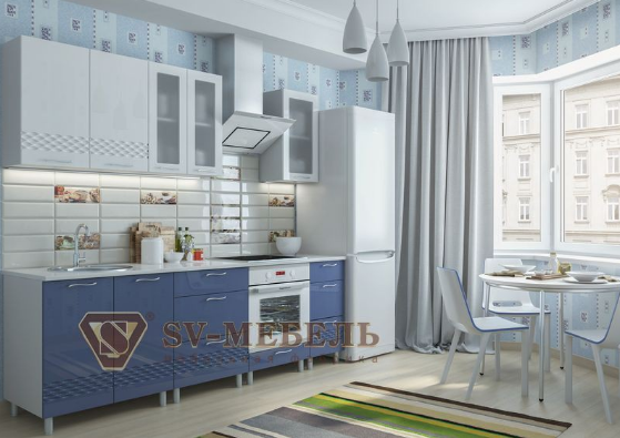 Кухонный гарнитур "Волна" выделяется своими красивыми цветами, разнообразием модулей и большим функционалом. Возможны прямой и угловой варианты любого размера.