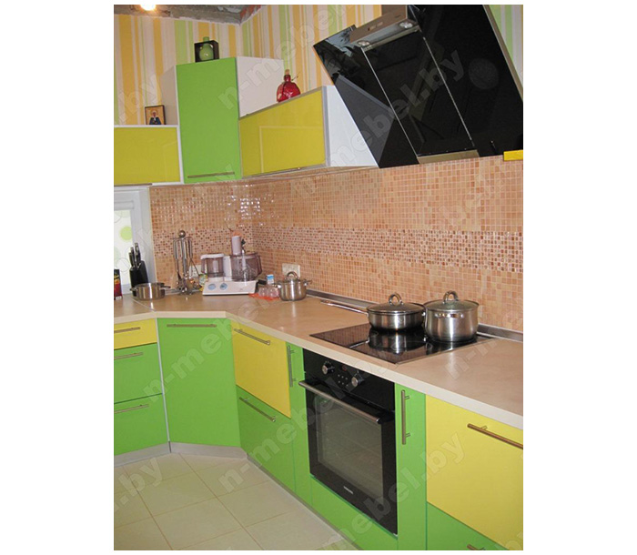 Современная угловая кухня изготовлена из материалов высокого качества: каркас выполнен из ДСП, фасады — рифленый пластик. Створки шкафчиков и выдвижных ящиков укомплектованы удобными удлиненными ручками. За счет своего яркого оформления данная модель станет настоящим украшением вашей кухни, подарив дому кухонную мебель с отличной функциональностью.