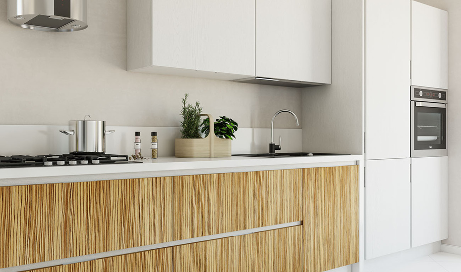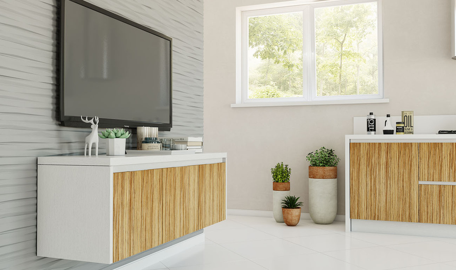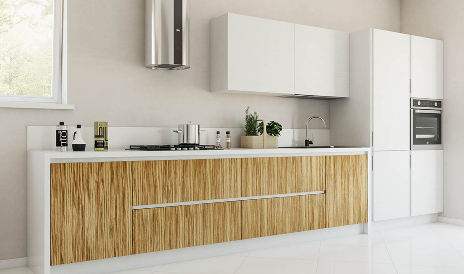 код 91553Экзотическое сочетание фактурного зебрано и матовых панелей Fenix'а.