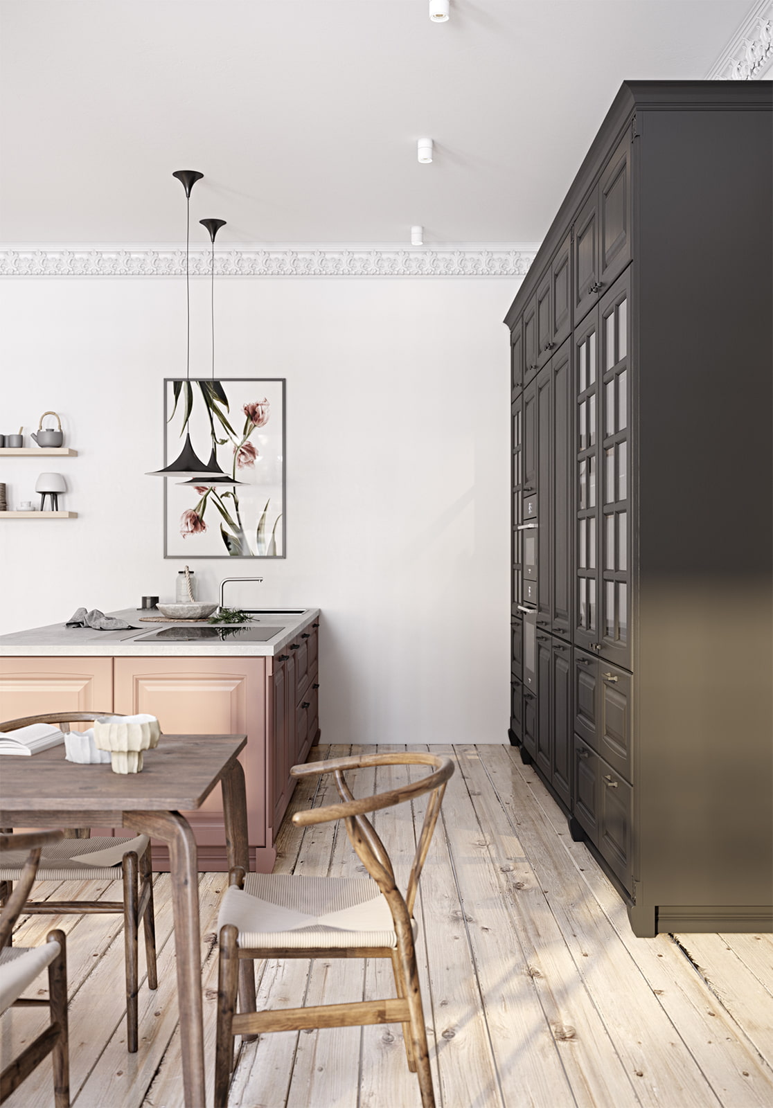 Фасады: т511 натуральный ясень, цвет ncs s 8000-n (без патины) / ncs s 3030-y90r (без патины) столешница пластик hpl, 38 мм, цвет хромикс серебро
