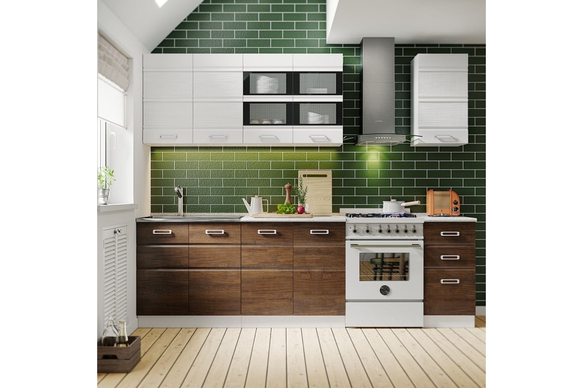 Кухня «Техно-2» 2.0 м (дерево - белый матовый)