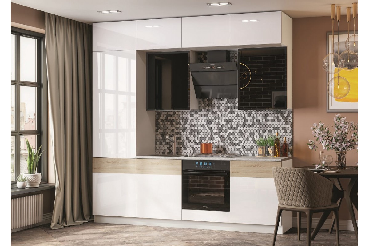 Кухня «Техно-5» 2,4 м (дуб сонома - белый глянец)