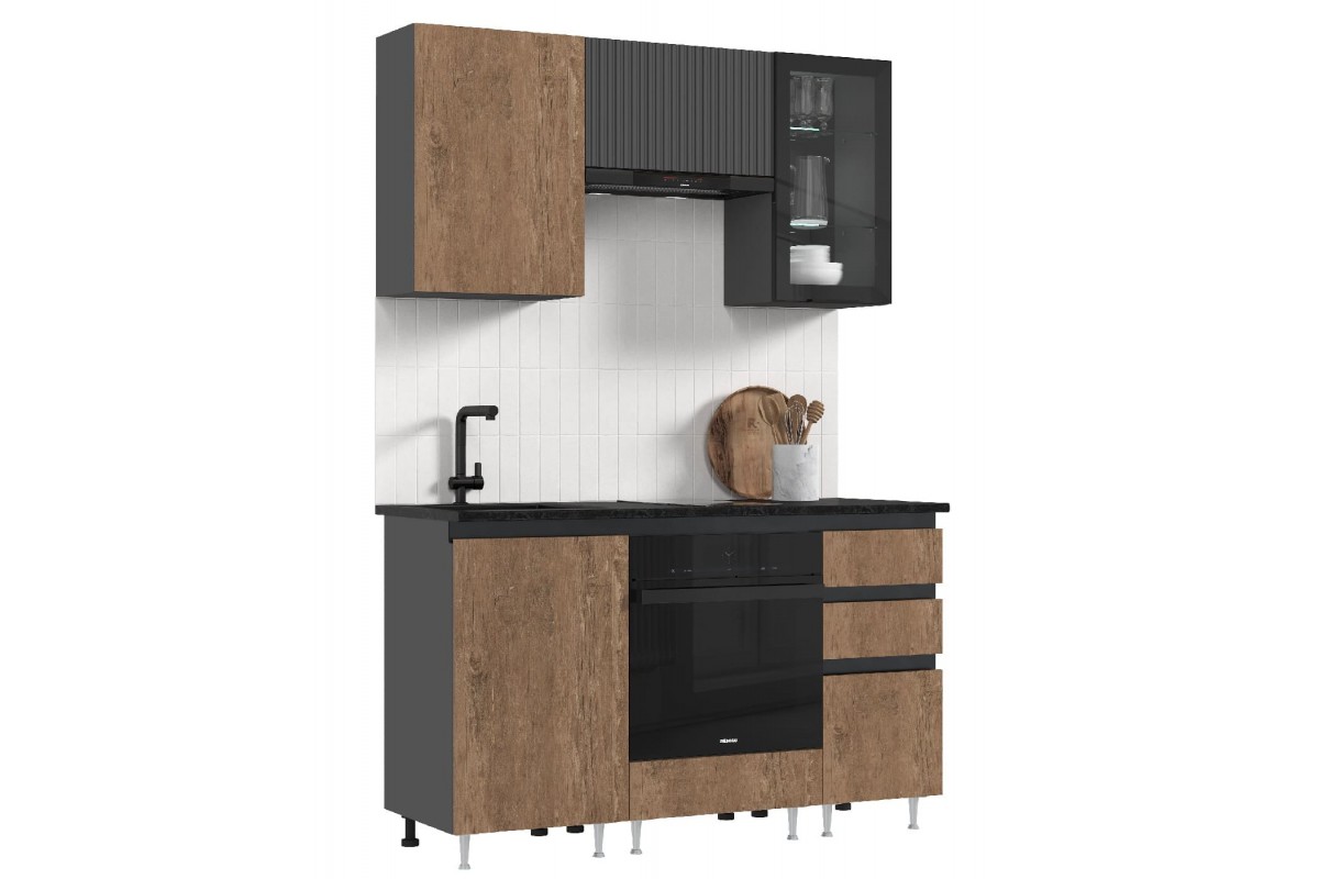 Кухня «Техно-6» 1,5 м ВТ (графит - экзотическое дерево амазония)