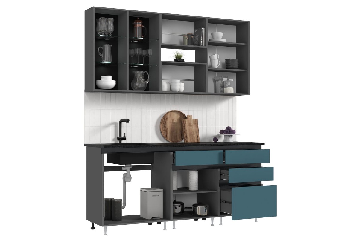 Прямая кухня «Mix-3» 1,7 м, сумеречный голубой-дуб крафт золотой