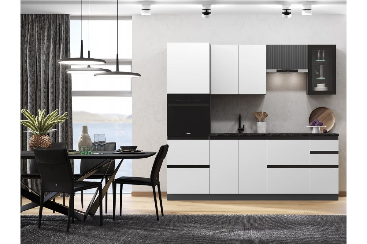 Кухня «Техно-6» 2.4 м ВТ (графит - белый снег софт)