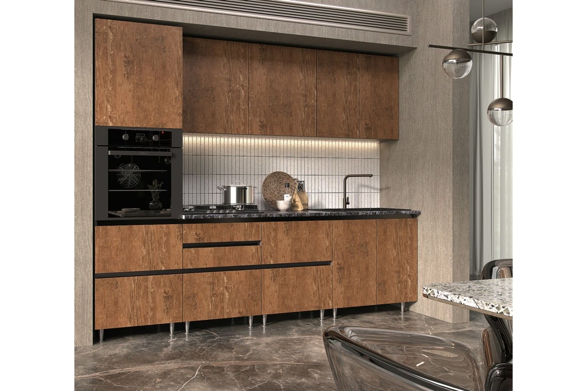 Материал фасада и корпуса: ЛДСП 16 мм. Ширина кухни 250 см.