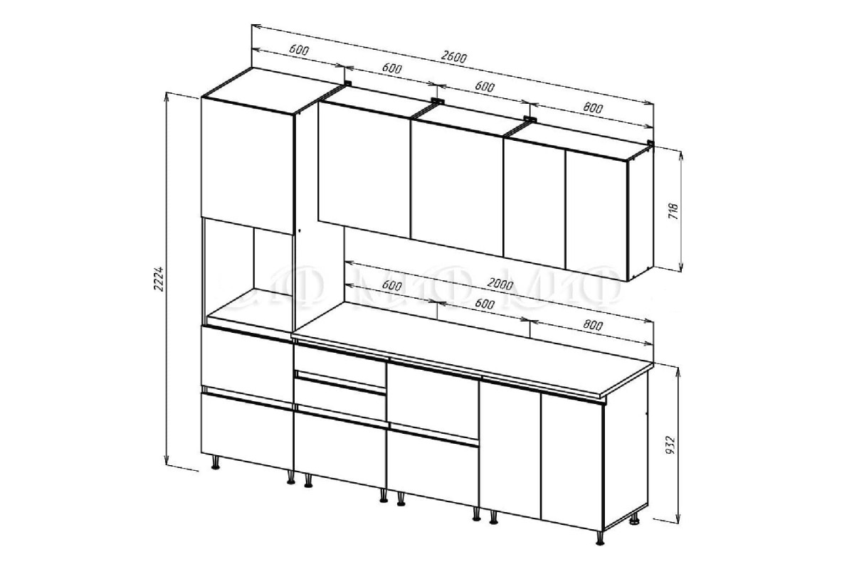 код 145884Ширина кухни: 2600 мм. Материал фасада: МДФ (Kronospan).