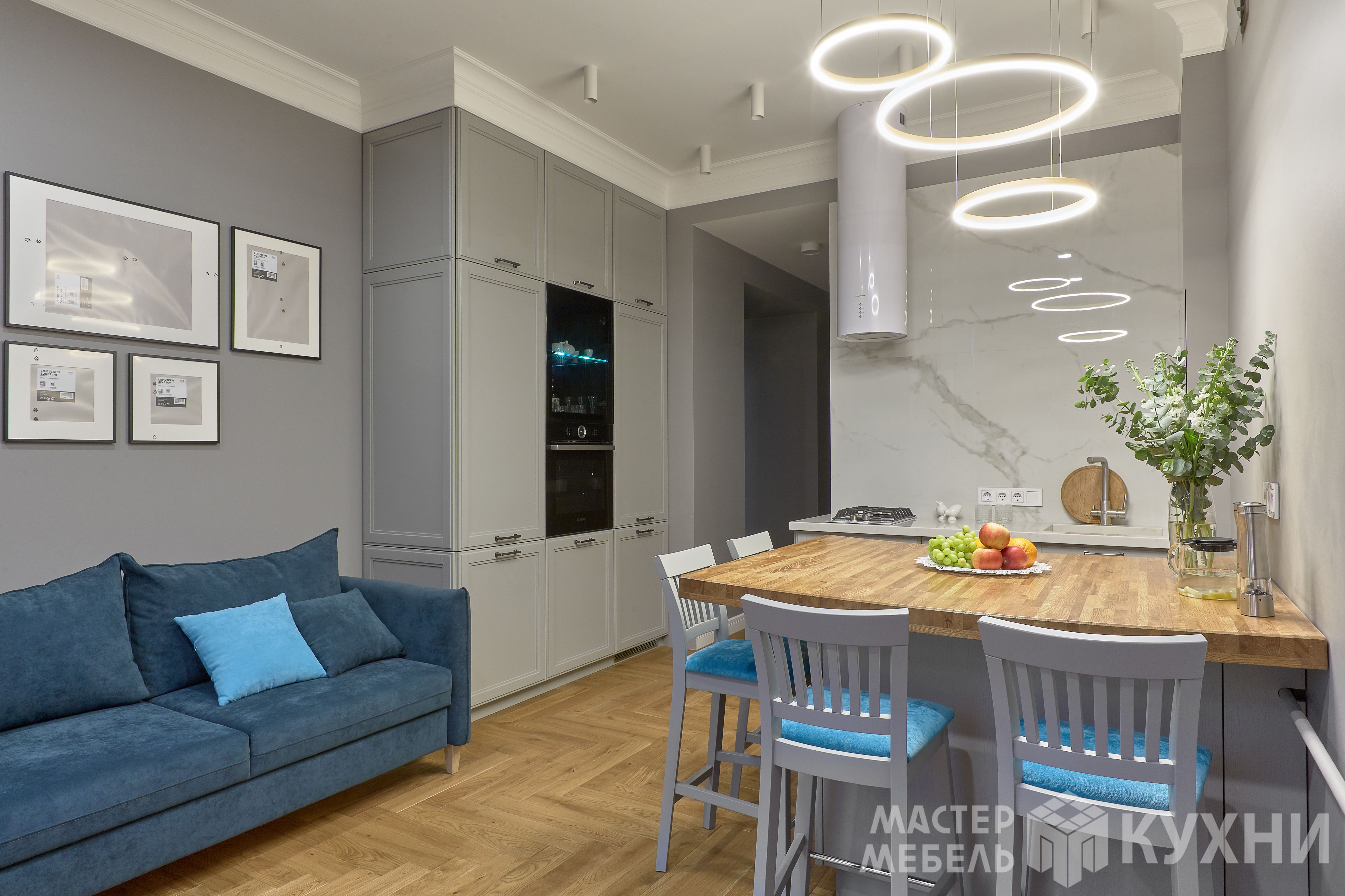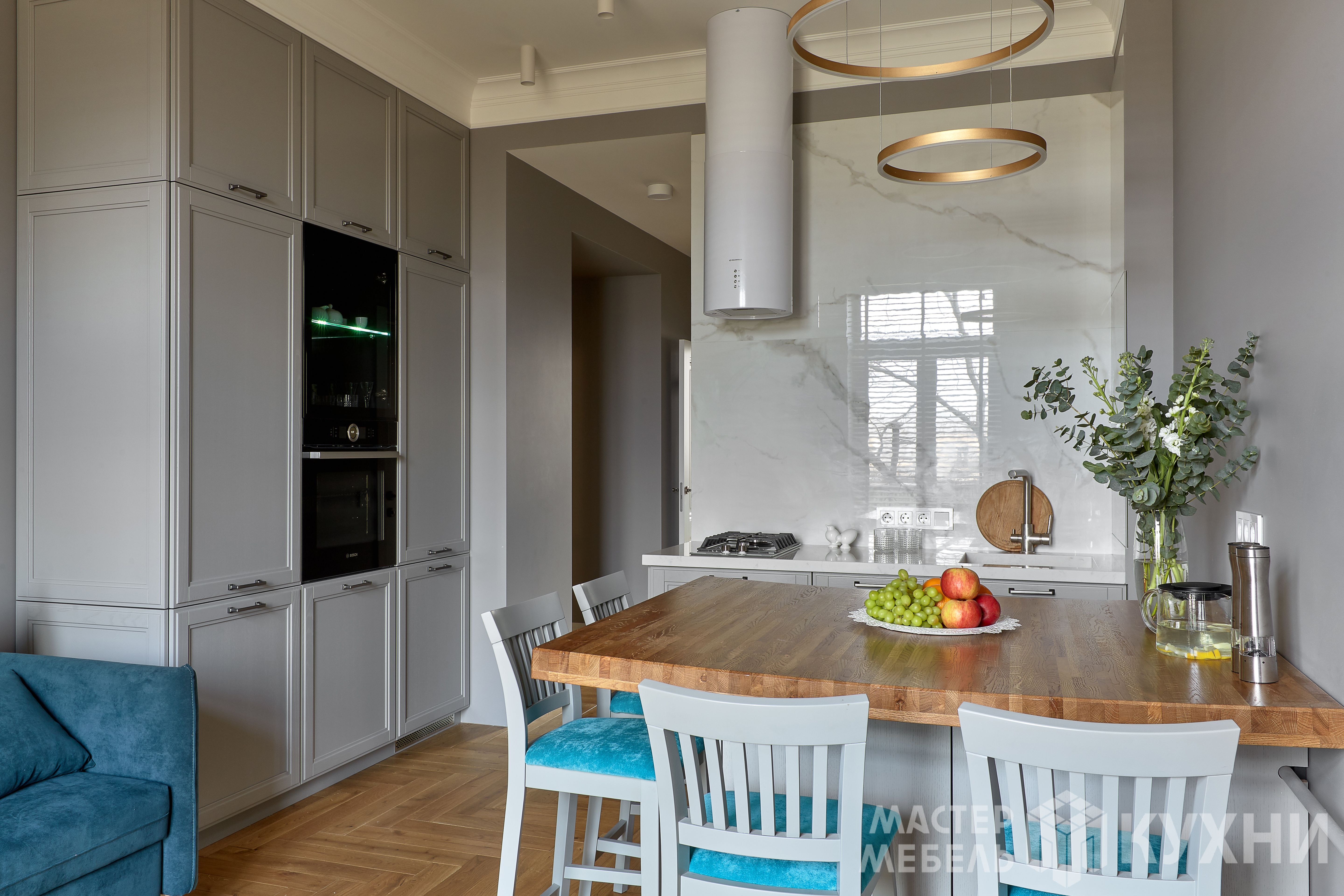 Современная кухня в скандинавском стиле. Светлые фасады из ДСП.